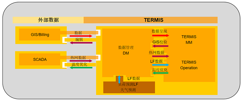 • TERMIS仿真數(shù)據(jù):供/回水溫度、供/回水壓力、瞬時熱負(fù)荷。• 現(xiàn)場級數(shù)據(jù)采集:SCADA。
