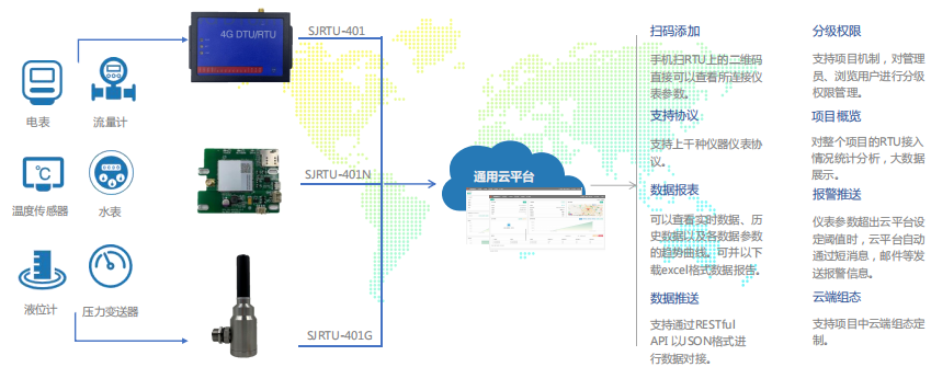 4G RTU與通用云平臺聯(lián)合使用,可對大量分散各區(qū)域的儀器儀表設備進行集中數(shù)據(jù)查看、配置、診斷、維護、管控。掃碼即可,方便易用。